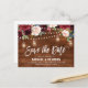 Burgundy Navy String Light mason jar Save the Date Postcard