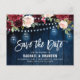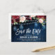 Burgundy Navy String Light mason jar Save the Date Postcard