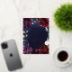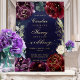 A burgundy navy wedding invitation featuring a watercolour painted scene of burgundy and navy blue peonies with shimmering gold accents against a deep navy watercolour background. This version is in GOLD FOIL so all the gold elements have real foil gold.