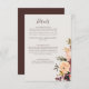 This burgundy orange floral | beige detail enclosure card is perfect for your rustic boho blush, dark green, and gold garden wedding. Design features a wreath or bouquet of minimalist watercolor peach, dusty rose, purple, and light pink florals along with copper, evergreen, yellow, and rust-coloured greenery. The flowers in this design are poppy, rose, and peony. The design is ideal for a simple, elegant spring, summer, or fall country wedding. Please find other matching / coordinating wedding stationery in the rest of this collection.