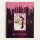 Un faux arrière - plan à l'apparence métallique bordeaux profond avec des gouttes de parties scintillant rose cerise, la peinture goutte à goutte. Personnalisez et ajoutez votre propre photo, année et titre. Le titre est écrit en rose avec un script de style moderne écrit à la main. Parfait pour l'école, le travail ou l'organisation de votre vie personnelle/familiale en 20XX (n'importe quelle année).