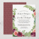 A love open wreath style floral frame of burgundy and pink roses with ferns and wispy greenery surround your text beautifully in this floral wedding invitation. Edit the text with your details. You can add or remove lines of text or change the wording to suit your preference. The reverse side of the invitation has a background colour in rich burgundy to coordinate with the roses on the front. You can edit this colour if you prefer a different background colour.