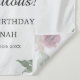 Introducing the perfect party accessories for your next birthday celebration! These charming tapestries feature a beautiful design with a border of blooming burgundy, pink, and gold flowers. They exude elegance and are sure to impress your guests. Additionally, they can be personalized, allowing you to add a unique touch to your special event. They are ideal for setting the tone for a memorable celebration!