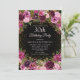 Elegant and romantic pink, burgundy, and purple watercolor vintage floral and foliage on black custom 30th birthday party invitation with gold glitter. Personalized with the name of the guest of honour.