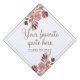 Elegant burgundy pink floral graduation cap topper with rose pink and marsala burgundy floral edge and a handsome modern rose pink script to complement the florals. Personalize with your own information.