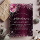 Burgundy pink florals glitter birthday invitation