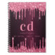Burgundy pink glitter drips monogram luxury notebook
