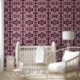 Burgundy & Pink Ornate Scroll Leaf Pattern Wallpaper