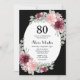 Burgundy Pink Roses 80th Birthday Black Invitation