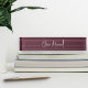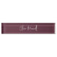 Elegant desk nameplate features your name, title, or choice of personalization in modern white hand scripted cursive lettering on a burgundy wine background.