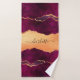 Burgundy purple gold agate marble rose gold name bath towel set