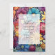 Burgundy, purple, mustard, blue, burnt orange, and green floral wedding invitation.