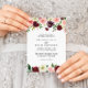 This burgundy purple spring floral traditional wedding invitation is perfect for a simple wedding. The hand-painted design features green leaves, dazzling pink, blush, purple, red, white and burgundy dazzling roses, peonies neatly arranged in small cute bouquets.