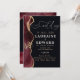 Simple wedding invitation card design dark black background with burgundy red agate modern wedding design