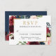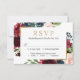 Burgundy Red Blue Blush Floral Gold Decor Wedding RSVP Card.