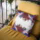 Burgundy Red Blue Navy Rose Flower Waterfall Drop Throw Pillow
