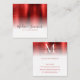 Burgundy Red Brushed Metal Monogram Elegant Script Square Business Card