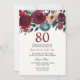 Burgundy Red Floral Elegant 80th Birthday Invite