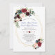Burgundy Red Flowers Gold Frame Wedding Invitation