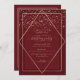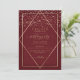 This elegant and modern birthday party invitation is ideal for a classy and formal event. It features a faux printed sparkly gold glitter confetti sprinkled over a thin geometric diamond and rectangle border with a burgundy red thick border underneath and light burgundy red fill. It's chic, luxurious, pretty, simple, and trendy; the perfect design for your special day.