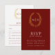 Burgundy red gold drawn leaf monogram RSVP wedding Card