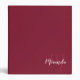 featuring personalized name in white modern script font style and monogram in light burgundy red modern script font style as background on burgundy red background.