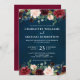 Burgundy Red Navy Blue Floral Rustic Boho Invitation