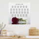 This beautiful 26 table wedding seating chart has table assignments for 260 guests at the traditional seating arrangement of 10 people per table. The romantic design features a photo of a single long stemmed burgundy, maroon, or wine red colored rose lying on its side reflecting in a pool of water with waves and ripples. The title reads "please find your table" in elegant lacy script calligraphy. There is space for the couples' names and wedding date. Wonderful way to help your guests find their seats while making your wedding reception all the more beautiful.