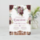 This elegant charro theme quinceanera invitation features moody beautiful dark burgundy roses, with blush pink rose accents, a crest with a beautiful watercolor horse and the welcoming gates to a sprawling ranch. Fully customize all the text to make this your own. See the shop for other versions of this design and matching accessories