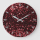 Burgundy Red Ruby Sparkly Faux Glitter Grey Glam Large Clock