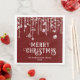 Burgundy red and White String lights Sparkles Christmas Party dinner napkins with a cute whimsical fun party invitation for a festive Holiday party.