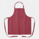 Burgundy red apron with stylish white pinstripe pattern. The thin vertical stripes are evenly spaced.