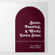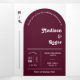 This is an all-in-one Tri-Fold Wedding Invitation that features an elegant and groovy modern minimalist boho design with a retro script font in an arch shape on a burgundy background along with a photo and QR Code. The simplicity of this design adds a touch of elegance to your wedding. It works well with many wedding themes and definitely a great addition to your wedding. Just customize the names and wording in a few easy steps in the text fields and personalize the all-in-one tri-fold invitation card with your photo of the happy couple and replace the QR Codes with yours to give your invitation a nice personal touch. This invitation will save you money to send everything at once. It has a RSVP postcard that your guest can just send it back. Just simply fold each invitation card into the outlined shape -- seal and send to your guests. No envelope is needed for shipping -- just postage.
