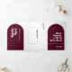 Burgundy Retro Boho Arch Photo QR Code Wedding Tri-Fold Invitation