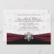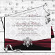 A beautiful winter theme with a deep, silky burgundy ribbon, silver snowflake and lovely white damask background for these custom party invitations.