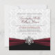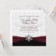 A beautiful winter theme with a deep burgundy ribbon, silver snowflake and lovely white damask background for these custom wedding invitations.