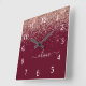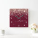 Burgundy Rose Gold Blush Pink Glitter Monogram Square Wall Clock