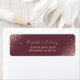 This elegant modern wedding return address label feature a rose gold faux glitter design arranged diagonally in two corners. The customizable text combines pale rose pink handwriting and copperplate fonts on a dark burgundy red background.