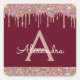 Burgundy Rose Gold Sparkle Glitter Monogram Square Sticker