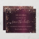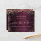 Une carte moderne Save the Date pour une fête d'anniversaire de 50e (ou de n'importe quel âge). Une couleur arrière - plan bordeaux. Décoré de faux éclats d'or rose. Le texte : Save the Date est écrit avec un grand script de style à la main tendance.