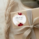 This round sticker features a white background adorned with burgundy red and pink roses, dried pampas grass, and cotton flowers. The elegant script and font style give it a sophisticated look, making it the perfect addition to any Thank you card or gift.