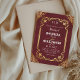 Medieval wedding invitation royal burgundy with gold frame ornate on with a gold ink pour effect (the gold is a digital effect, not real foil!) and white modern calligraphy. Classy and elegant, moody and romantic wedding invitation.