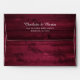 Personalized burgundy rustic wood and sunflowers wedding envelopes with a return address. Our burgundy envelopes feature sunflower flowers and string lights on a barn wood background. Matching items available.