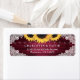 Personalized burgundy rustic sunflower wedding return address labels ideal for your rustic country, backyard, garden, or barn wedding party inspired by sunflower flowers. Matching items available.