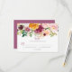 Rustic blooms including peonies and roses in burgundy, saffron yellow, mauve and blush pink RSVPs. The text is mauve and grey and the back of the card is mauve.