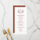 Complétez votre réception de mariage avec cette carte menu mariage, avec une calligraphie simple et élégante et un monogramme personnalisé marié et marié. Conçu dans un élégant bordeaux rouille, ce modèle de réception présente un motif de laurier à couronne classique avec feuillage feuille verdoyant, ajoutant une touche raffinée et intemporelle à votre table de fête de répétition. Le design typographique traditionnel et les initiales élégantes de l'esperluette créent une esthétique sophistiquée et élégante. Parfait pour un cadre mariage chaleureux et romantique