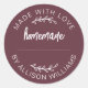 Burgundy Script Made With Love Homemade Food Jar Classic Round Sticker