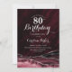 Burgundy Silver Agate Marble 80th Birthday Invitation