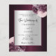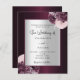 A deep burgundy and faux silver looking background decorated with burgundy and pink florals, flowers. Personalize and add your names and wedding details.