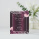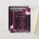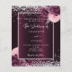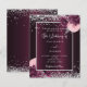 A deep burgundy background decorated with burgundy and pink florals, flowers and faux silver glitter, sparkles. Personalize and add your names and wedding details. Black letters.